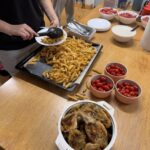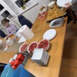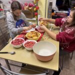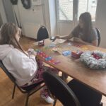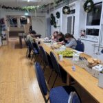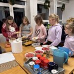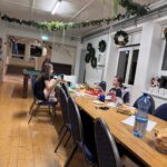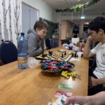 Köögitoimkond kujuneb meil jooksvalt, kes soovib hakkida, kes jutustada ja ka ainult söömine on teretulnud. Meisterdada soovijad said harjutada piparkoogimaja kaunistamist, traadist jõulueheteid tegime ka. Need said eriti toredad, aasta lõpus on neid väga ilus dekoratsiooniks võtta. Teise päeva hommikul tegime küpsisetordi, õhtuks oli imemaitsev ja hea pidulik suutäis. Õhtul tampisime sealihašnitsleid ja tegime makaronisalatit. Teise õhtu ööhakul langetasime oma fantastilise jõulukuuse, oli aeg… Kuusk on meil pikk ja kohev ning 6 meetrit pikk. See kuuse n.ö. kokku pakkimime on meil samuti väga traditsiooniline. Tüdrukutele meeldib kuuseokkad kokku pühkida ning jäädvustada öönoortekas pildile. Nad ütlevad, et see on nii mõnus ja teraapiline. Mängisime palju Ligrettot, meenutasime Marinat- sakslannast vabatahtliku, kes meile seda kaardimängu õpetas. Poistele oli populaarne korvpall ja male- selle üle ma olen eriti uhke. Kes oskab teist malet, meie noormehed oskavad ning hoiavad endid ikka kursil. Malemäng arendab aju ja kõrvalt on seda nii-nii uhke vaadata. Poisid arutlevad, meenutavad reegleid.